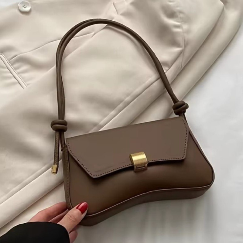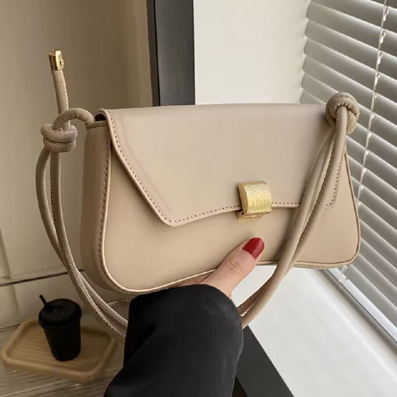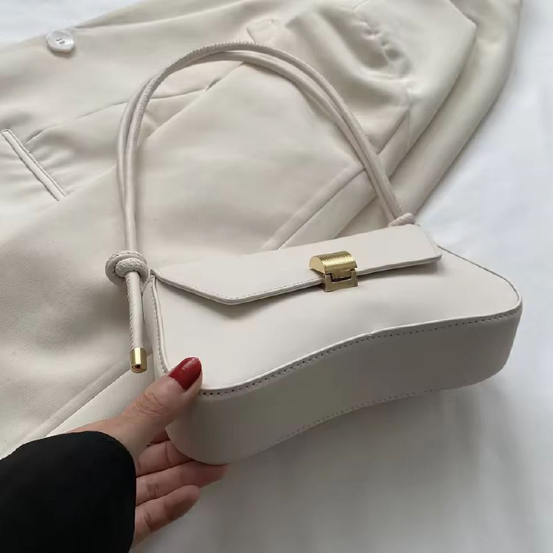 Personality Women Crossbody Shoulder Bag Solid Shopping Handbag Elegant Metal Buckle Underarm Bag