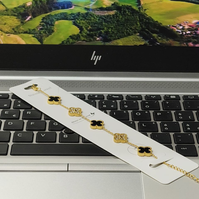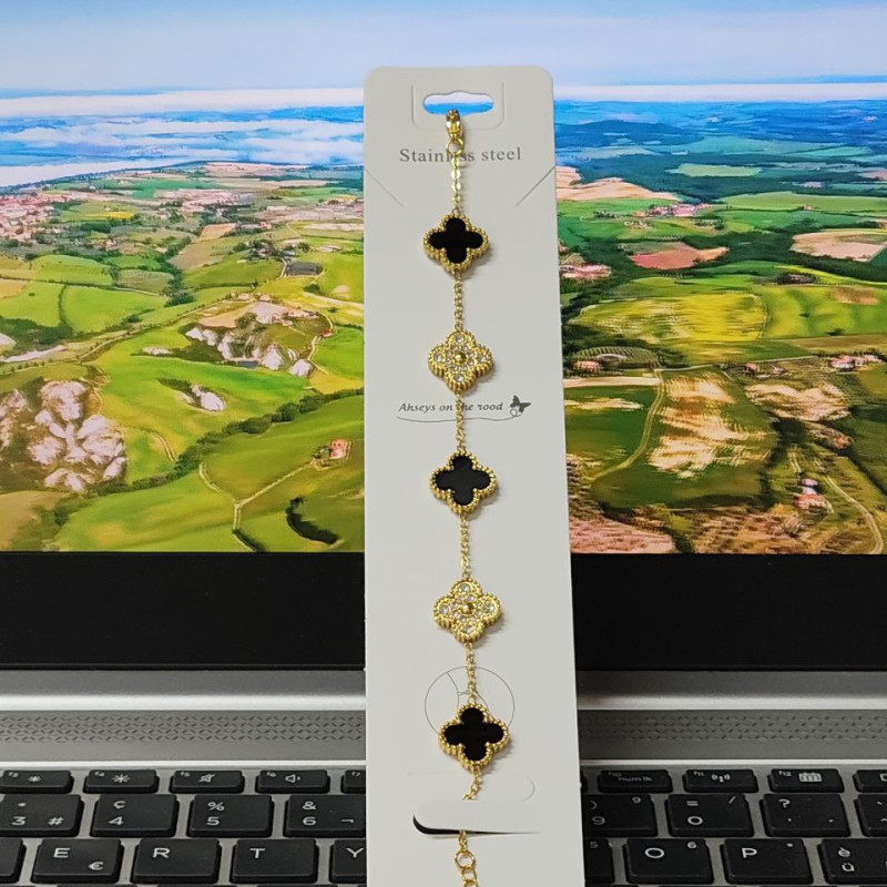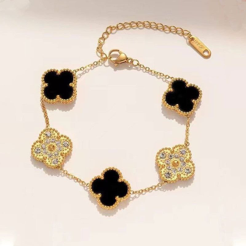 Stainless Steel Gold-Plated Multicolor AD studded Clover Link Bracelet For Women