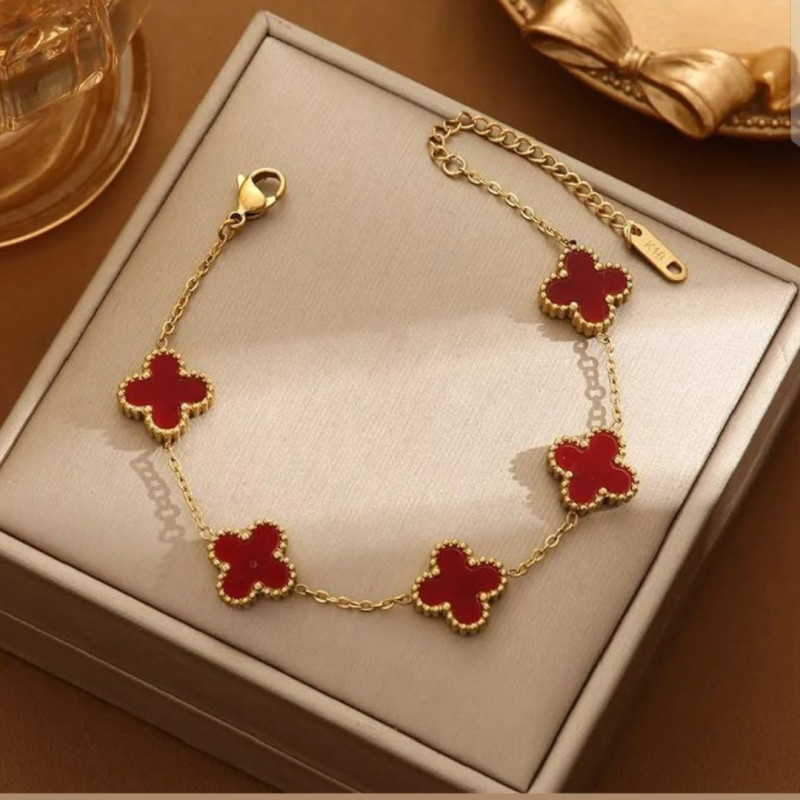 Double-sided Four-leaf Five Flowers Women Titanium Steel Hand Jewelry Luxury
