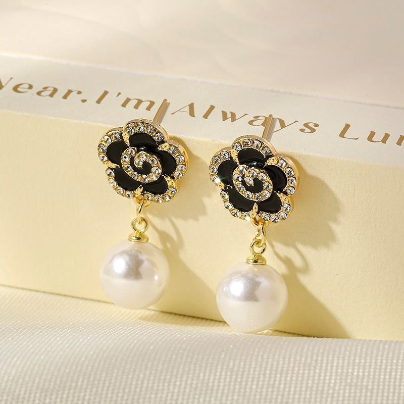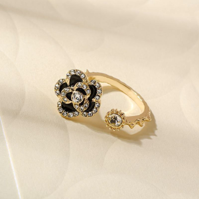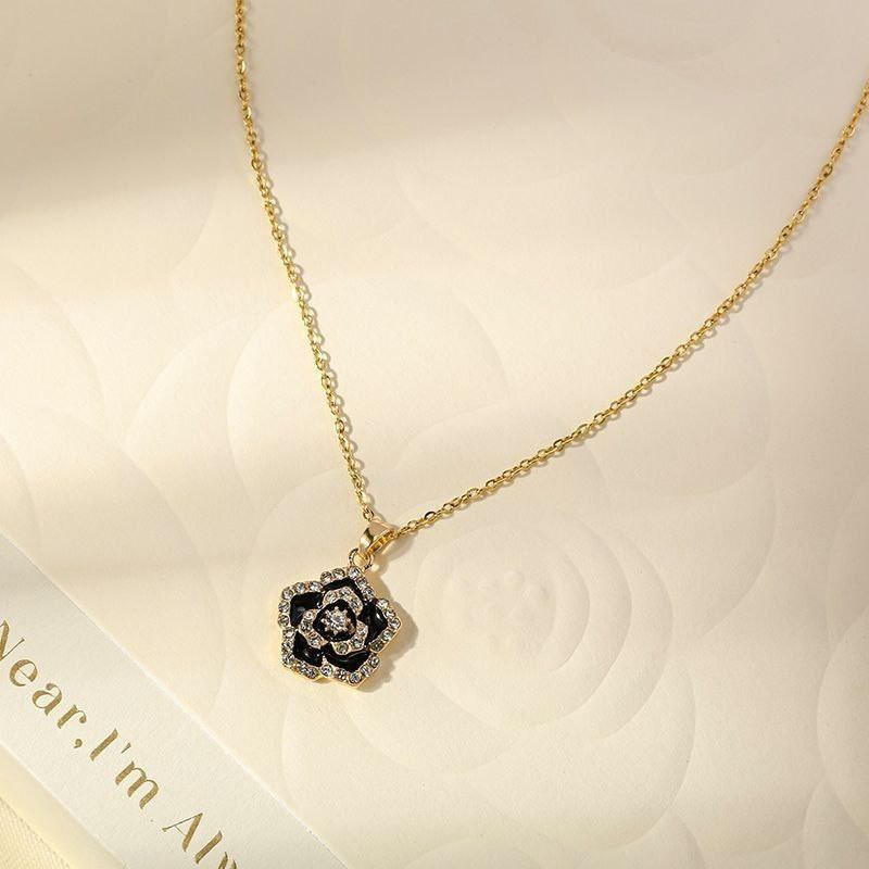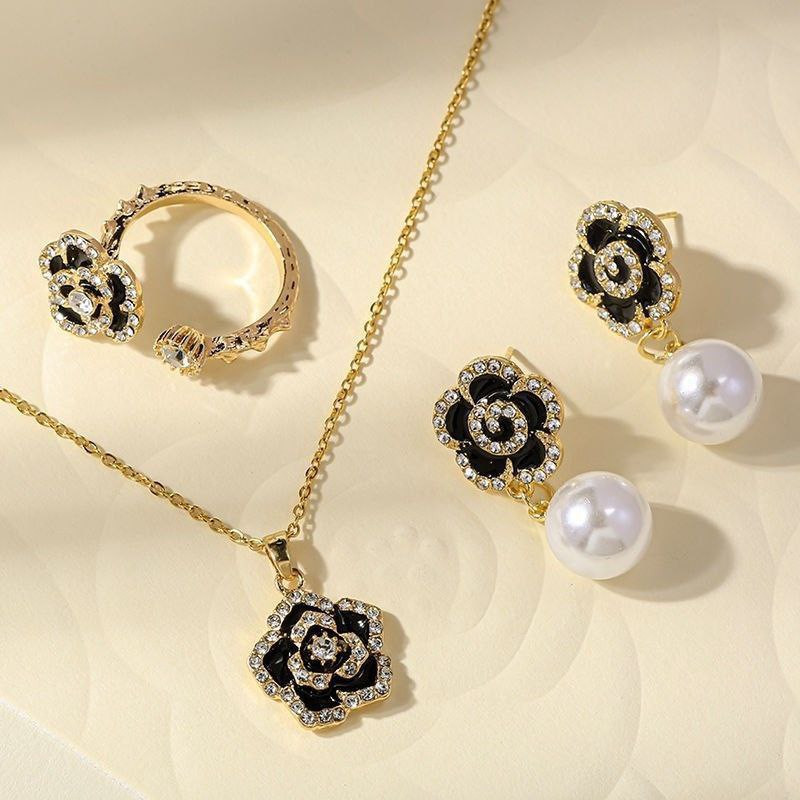 4-piece black floral jewelry set for women, necklace, earrings, and ring, personalized creative jewelry, fashionable and versatile