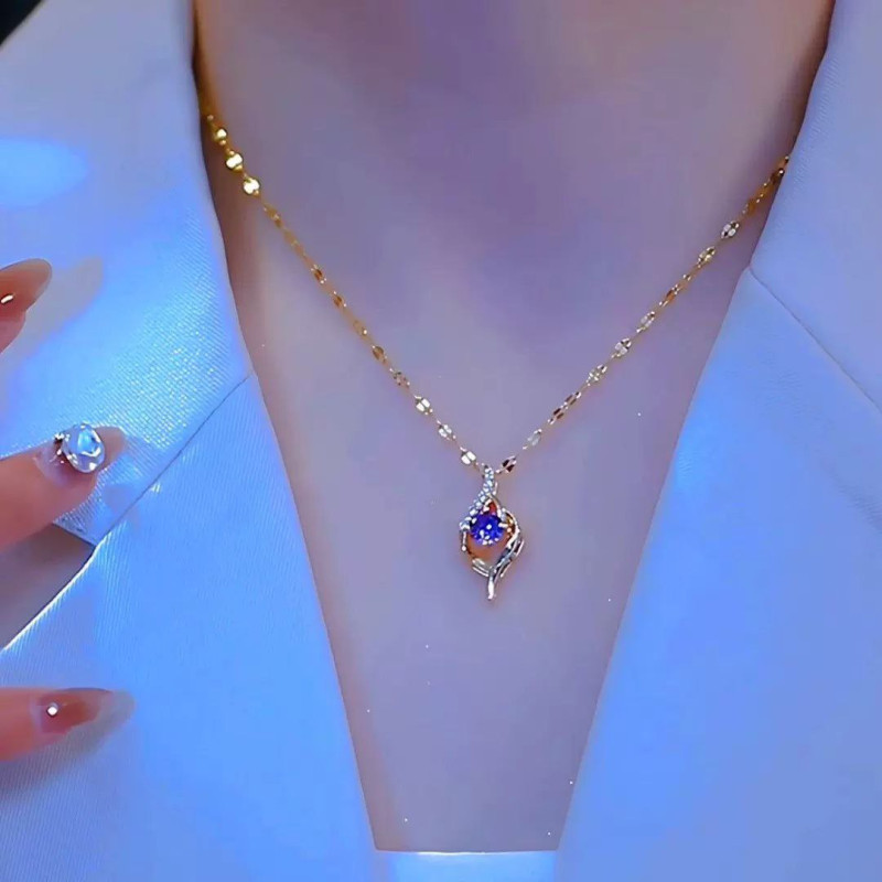 SW800925Fashionable Titanium Steel Collarbone Chain, Elegant Purple Zircon Inlay Heart-shaped Pendant, Simple Necklace for Women
