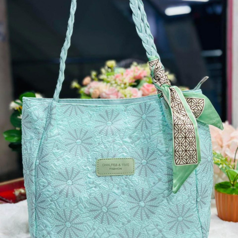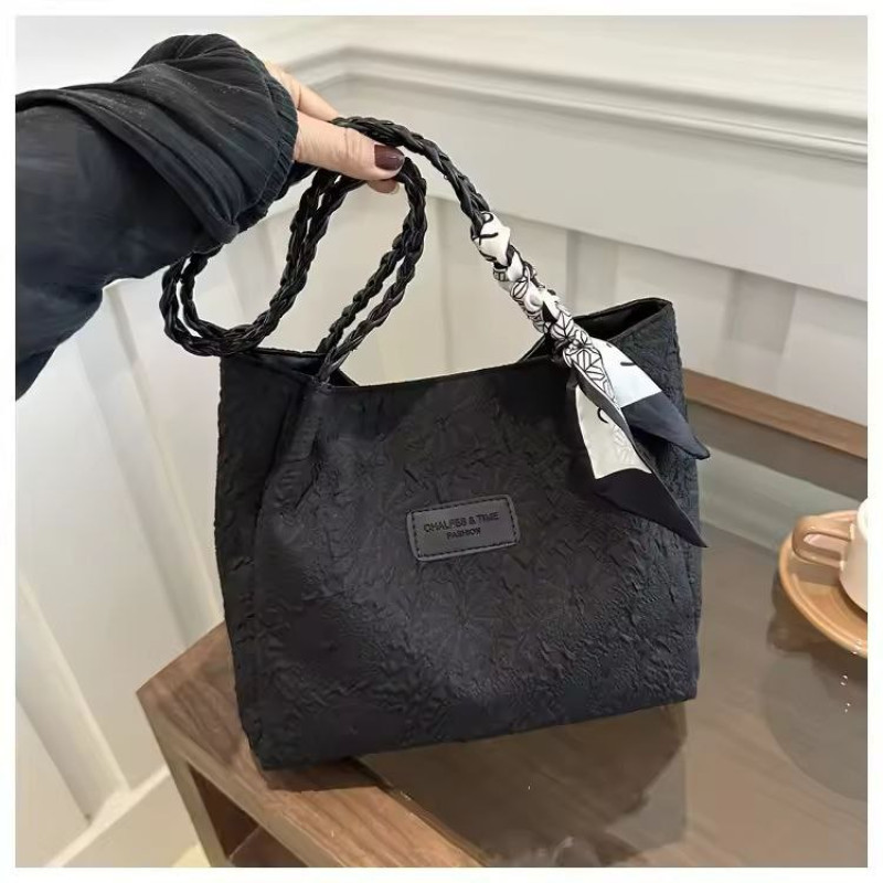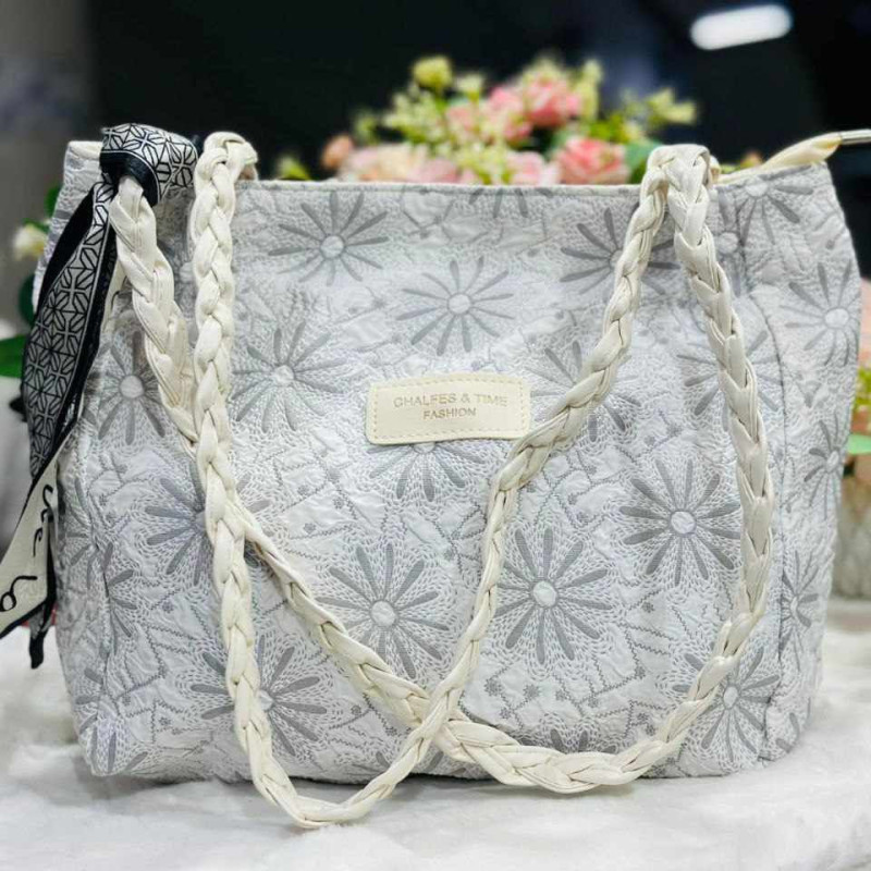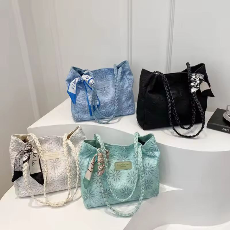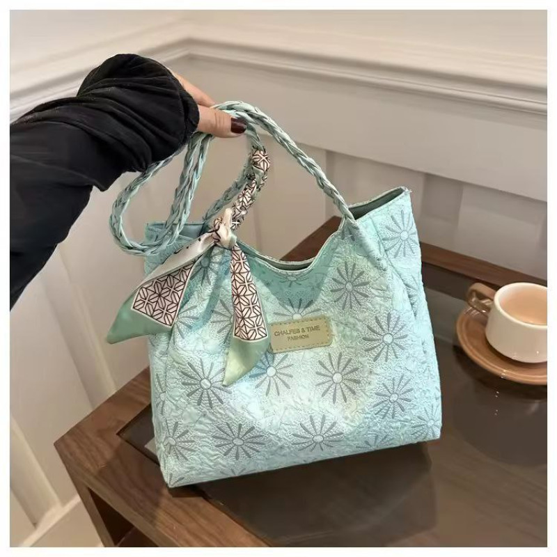 SW970925Niche National Style Embroidery Flower Shoulder Bag Summer Autumn Ribbon Decoration Handle Bag Women Casual Commuter Tote Bag