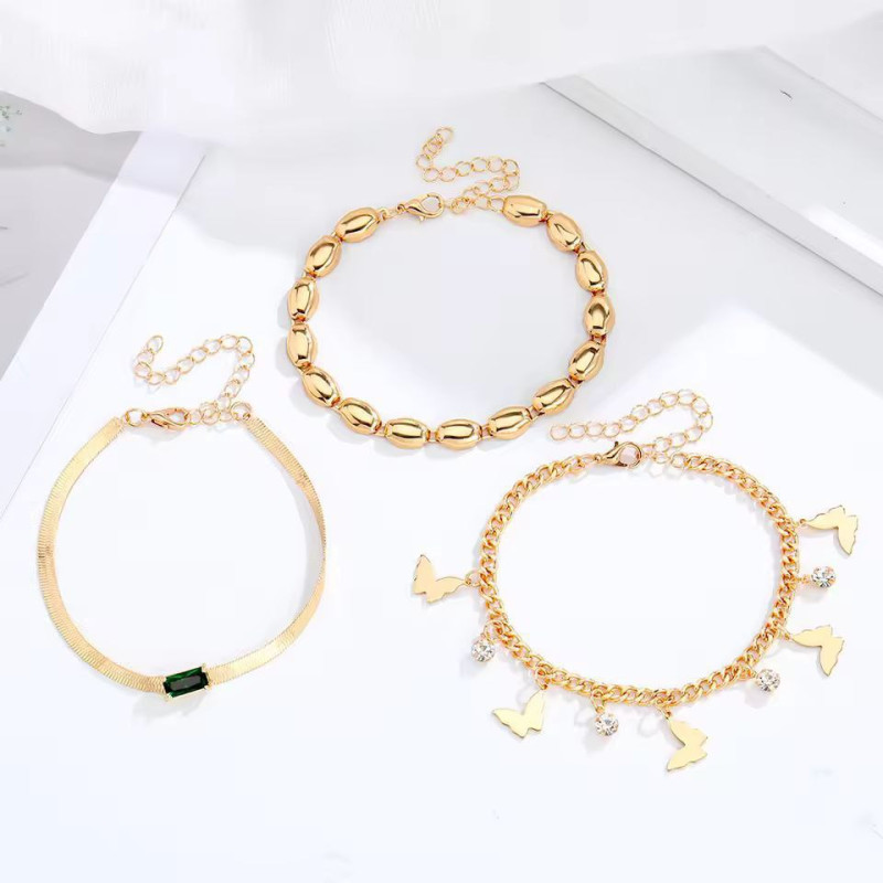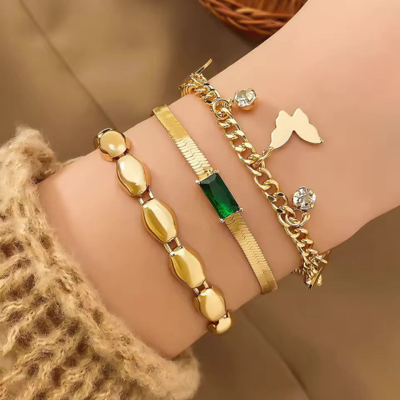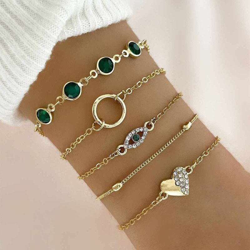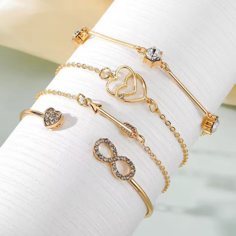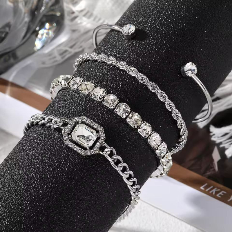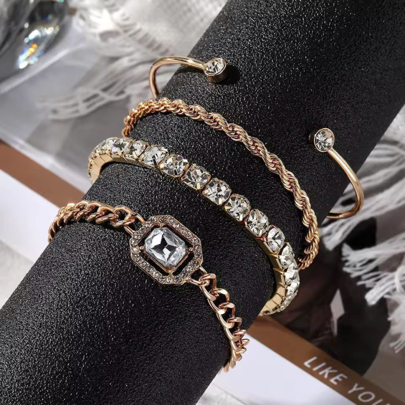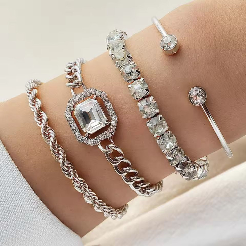 4 Piece Set Luxurious Bracelets for Women Crystal Shiny Adjustable Opening Chain Bracelets Punk Bangle Fashion Jewelry