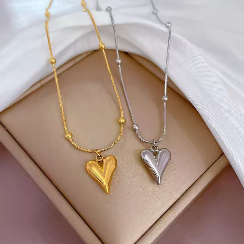 Stainless Steel Love Heart Pendant Necklace for Women Girls Gold Color Steel Color Korean Style Kpop Clavicle Chain Jewelry Gift