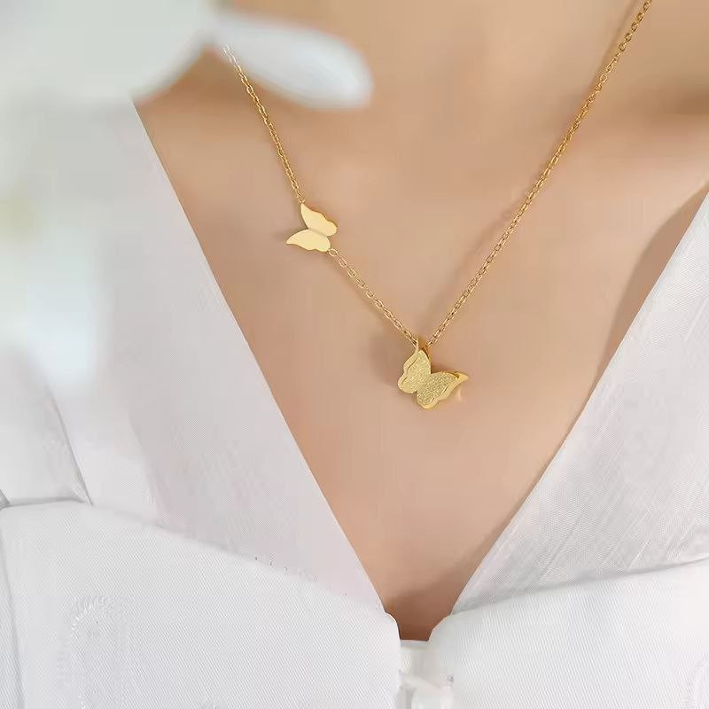 High Quality Stainless Steel Jewelry Fashion 18K Gold Plated No Tarnish butterfly Pendant Necklace