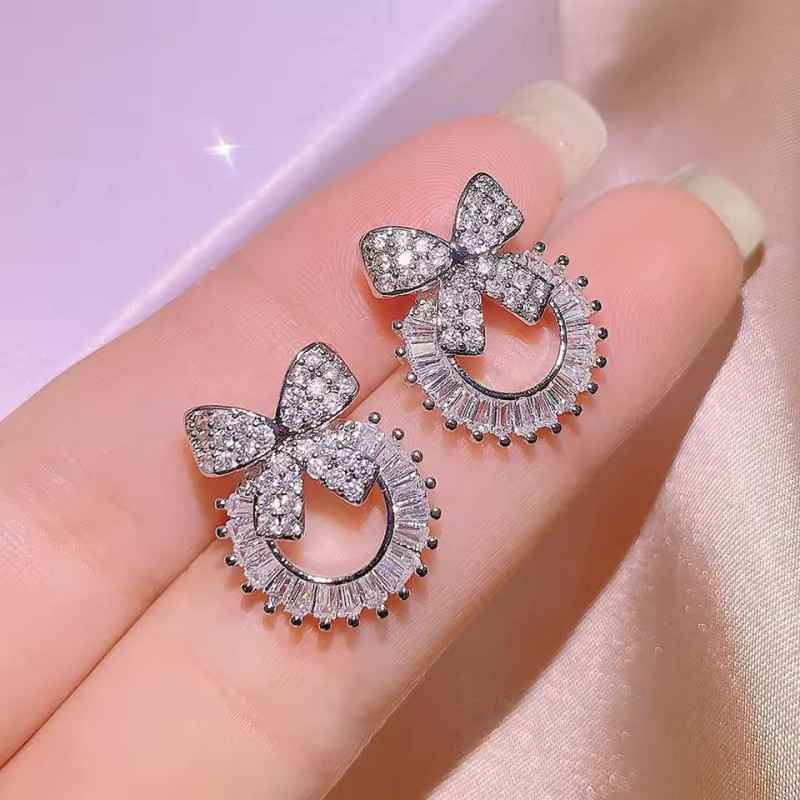 Fashion Jewelry Three Piece Set Cute Butterfly Circle Shiny Zircon Hoop Earrings Ring Necklace for Women